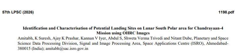 印度月船四号又来新消息了,其印度2026年月球与行星科学会议(LPSC 2026)摘要文件显示,已经选定了月船四号4个潜在着陆点,并且选定了1个最有利的月球着陆区,为后续任务的执行提供了重要支持——也就是月船四号采样返回任务。